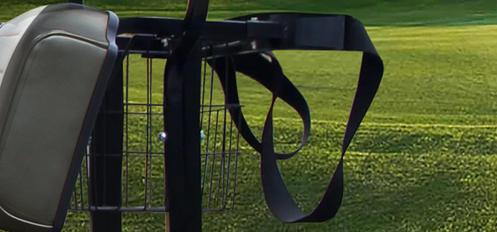 Includes a seamlessly integrated storage basket (20 lb capacity, no drilling required), plus cup holders, a ball holder, and an optional golf bag kit bracket for your gear.
