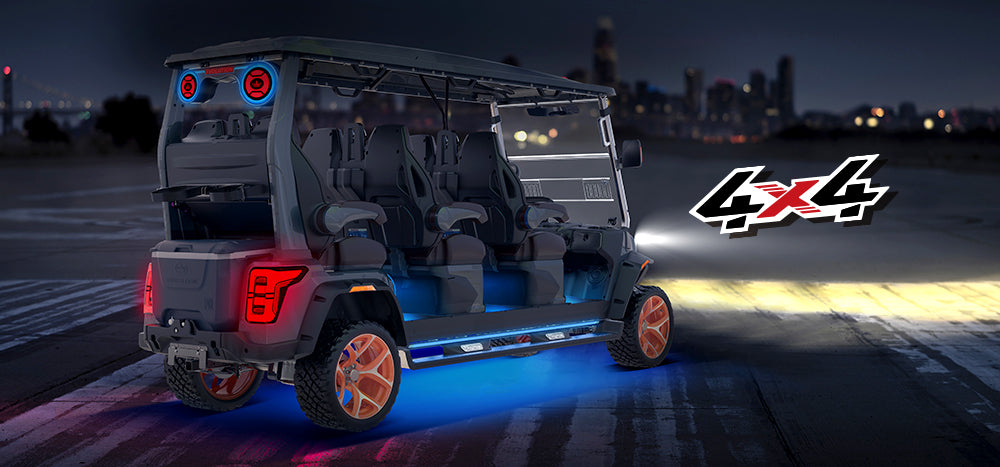 The D-MAX XT6 is a lifted 6-seater electric golf car equipped with an advanced 4-wheel drive system. Designed for performance on a variety of terrains, it blends rugged power with refined comfort. Whether navigating through a resort, gated community, or more rugged off-course paths, this model delivers confident handling, spacious seating, and innovative technology for all passengers.