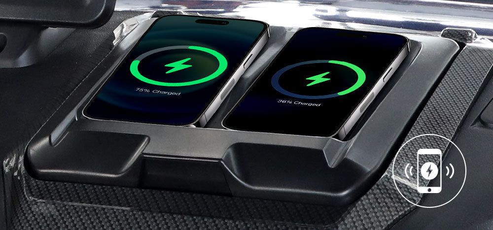Charge two phones simultaneously without clutter. Built-in dash chargers keep your devices powered up and accessible.